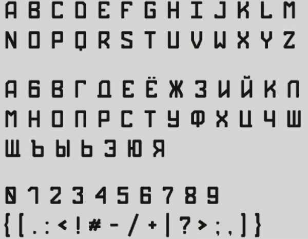 Примечание: По ссылкам ниже представлены два трафаретных шрифта. Первый — темный, то есть с «полными», залитыми буквами. Второй — классический трафарет, использованный в данной статье в качестве примера.