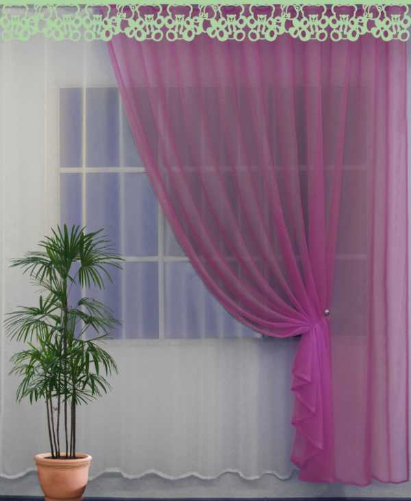 Нередко элементы для штор выполняются из тюля с оторочкой. Ламбрекен из тюля прекрасно подходит для оформления окна на кухне. Простой вид данного декоративного элемента с длиной до середины окна хорошо подойдет как самостоятельное и единственное обрамление оконного проема.