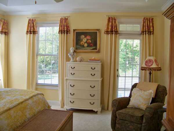 - для создания гармоничной атмосферы в спальной комнате дизайнеры рекомендуют подбирать цвет штор и ламбрекенов в тон с основным цветом спальни;