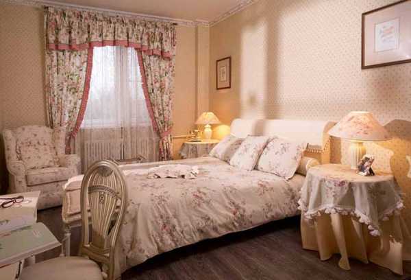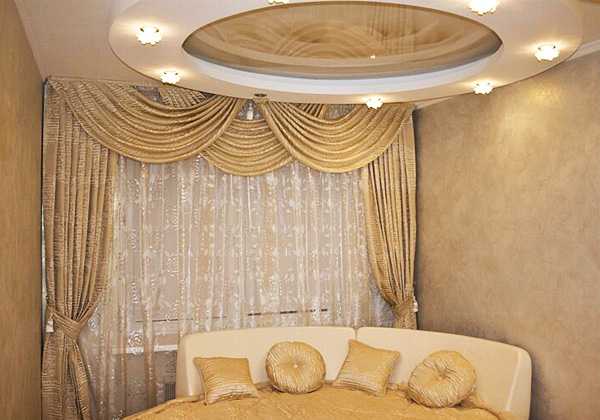Оформление для спальни менее торжественное, но более уютное и изысканное. Чтобы защитить комнату от ярких солнечных лучей, используется плотная парча или бархат. Если в комнате не хватает света, выбираются более легкие ткани.