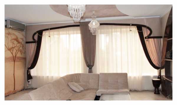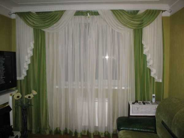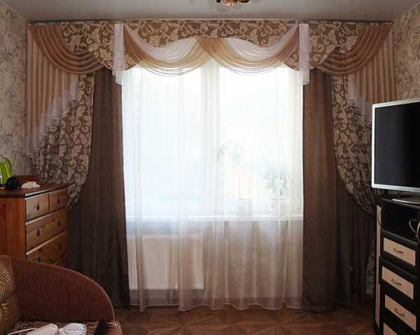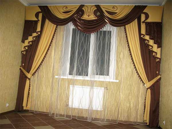 Осторожно используется комбинированный вариант ламбрекенов, потому как они сочетаются с интерьером помещения. За основу берется основной оттенок комнаты.