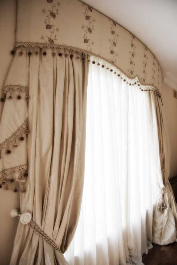 Выбирая для украшения штор ламбрекены, учитывается тот факт, что чем окно больших размеров, тем сложнее форма может быть применима.