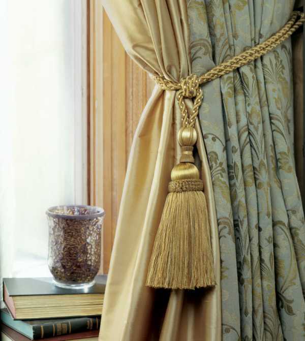 В классическом стиле такая модель идеально смотрится даже на окнах небольшого размера. Объемная драпировка портьер и толстый шнур, выполняющий роль подхвата, красиво и практично дополняют интерьер.
