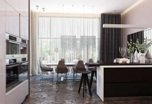 - В кухню подбираются практичные и стильные шторы. Вся семья собирается в этой части дома, и проводит в комнате значительную часть времени. Здесь хорошо будут смотреться занавески на одну сторону, жалюзи или восточный стиль.