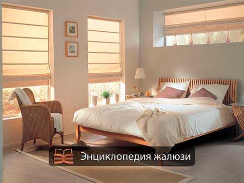 Римские. Отличный вариант для небольших спален. Длина до подоконника позволяет использовать пространство для дополнительного места хранения.