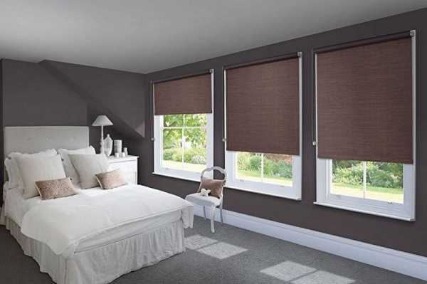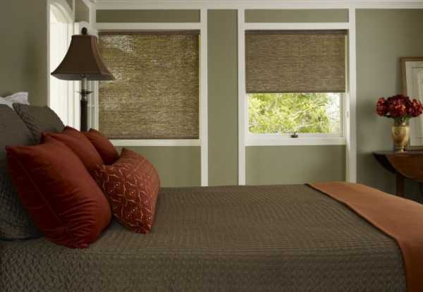 Это не означает, что рулонные шторы в интерьере спальни должны быть стопроцентно светонепроницаемы. Их производят и из обычной ткани, бамбуковой соломки, полупрозрачных материалов. В таких случаях для обеспечения полного затенения придется сочетать рулонные полотна с плотными портьерами или оснастить окна ближе к остеклению дополнительными светофильтрами, поднимать их днем и опускать на ночь. Еще один вариант ― рулонные жалюзи «день-ночь». Они состоят из двух полотен: прозрачного и светонепроницаемого, в дневное и вечернее время работают по принципу «портьеры – тюль». Выбор широк, для любой спальни при желании всегда найдется оптимальный вариант.