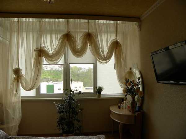 Крепятся к карнизу посредством завязывания лент или шнурком вокруг конструкции. Лучше подходит для более тонких тканей, но в случае плотного материала рекомендуется делать широкие полоски. Крупные бантики помогают создать воздушный дизайн, что актуально для детских спален. Достоинство вида — отсутствие посторонних звуков, которые обычно возникают при движении по карнизу.