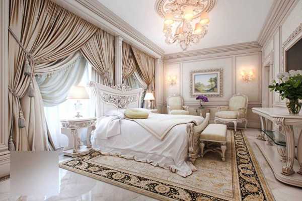 Французские. Такой тип штор делается из шелка или органзы. Отличаются красивыми складками. Преимущественный стиль применения – барокко.