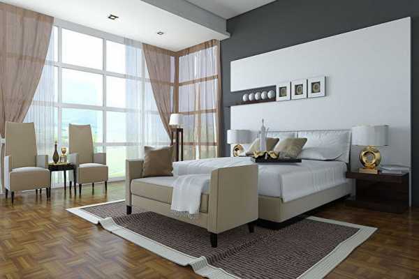 При выборе штор для спальни важно отталкиваться от интерьера и цвета стен.