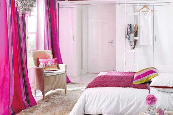 Розовые шторы в пастельных тонах благоприятно влияют на отдых, восприятие комнаты. Подходят под голубой, бежевый, розовый, золотой интерьер спальни.