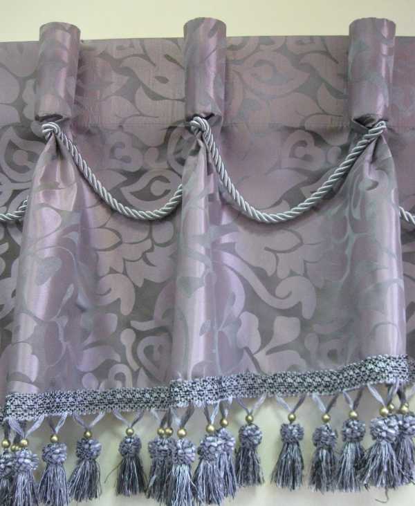 Все разновидности ламбрекенов могут сочетаться с дополнительными элементами (бахромой, лентой, фестонами, стеклярусом, бисером, аппликацией и окантовкой):