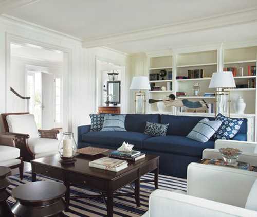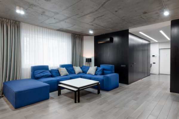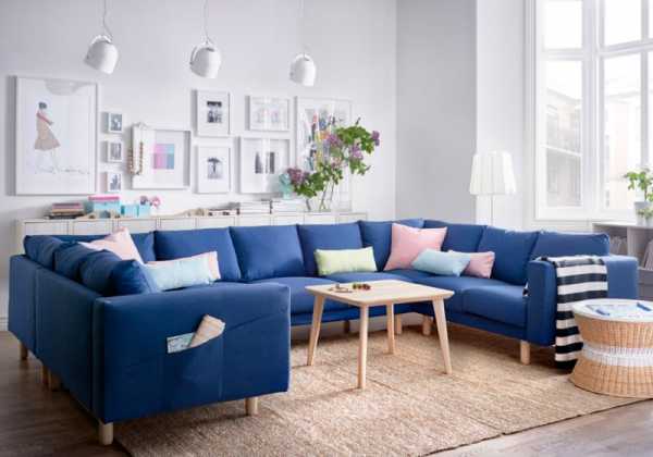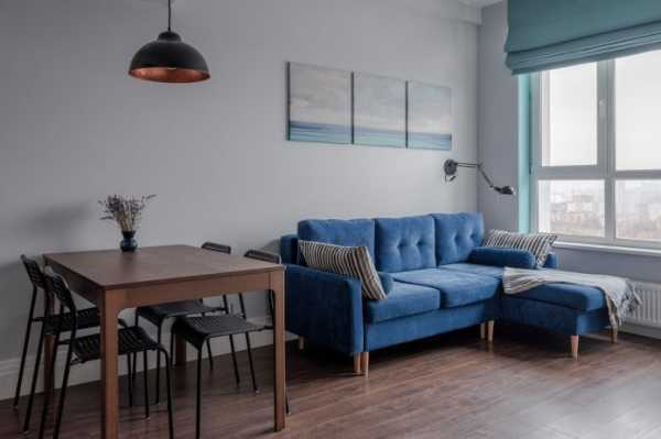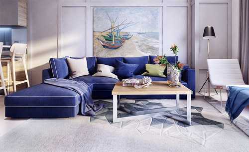 Гамма синего любит пространство и хорошее освещениеГде уместен синий диван
