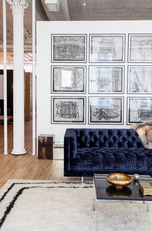 Посмотрите на фотографии интерьеров, в центре которых диваны королевского, электрического, оттенка индиго, классического джинсового или холодного сизого оттенков. Возможно они вдохновят вас на пересмотр декора вашей собственной гостиной, небольшой квартиры-студии или стильного современного лофты с кирпичной стеной.
