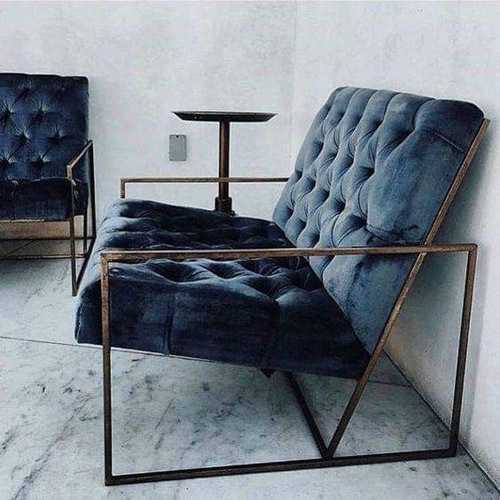 Для комнаты, где стоит синий диван, можно подобрать как гладкий материал обивки, так и бархатистый. В качестве опорной конструкции лучше выбрать сделанную из дерева. Выигрышно смотрится темная лакированная поверхность подлокотников и бархатная облицовка сиденья и спинки.