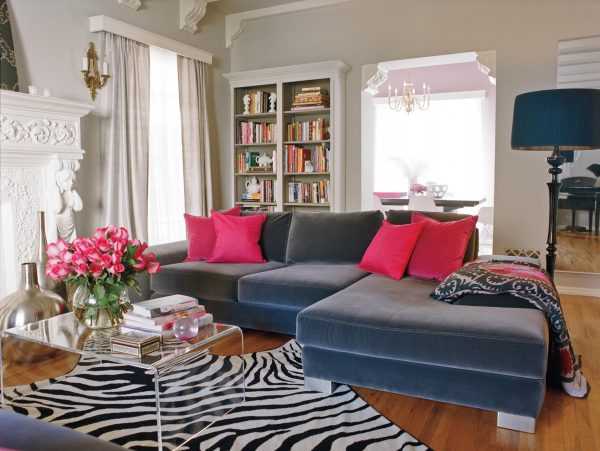Можно добавить к дивану серых деталей, например, подушек или пуфиков.