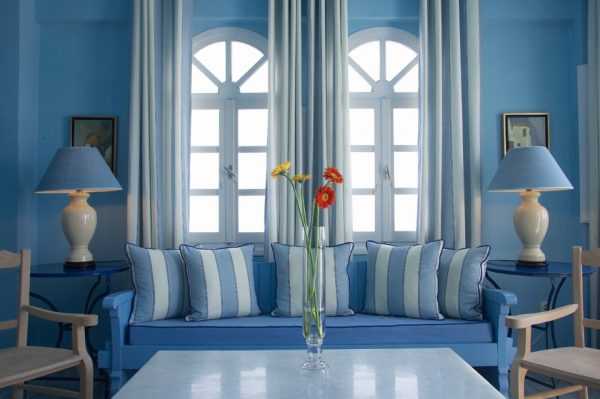 Выбирая синеватый цвет, учитывайте фактор освещения. Гамма синевы любит пространство и хорошее освещение, темное помещение не подойдет.