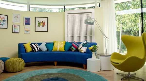 Синий диван в яркой цветовой гамме – смелое решение для эффектного интерьераКак оформить комнату