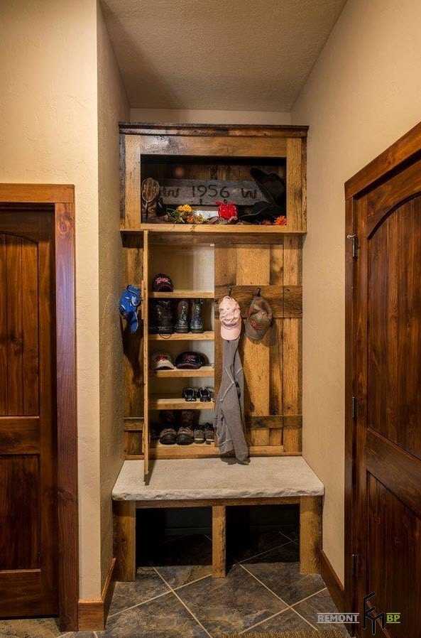 Для высокой обуви в таком случае полочки можно не делать, достаточно поставить «поддоны» или коврики, чтобы не пачкать пол в межсезонье.
