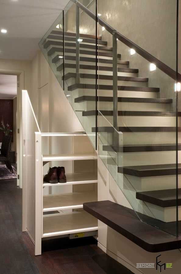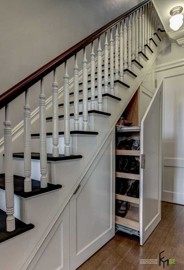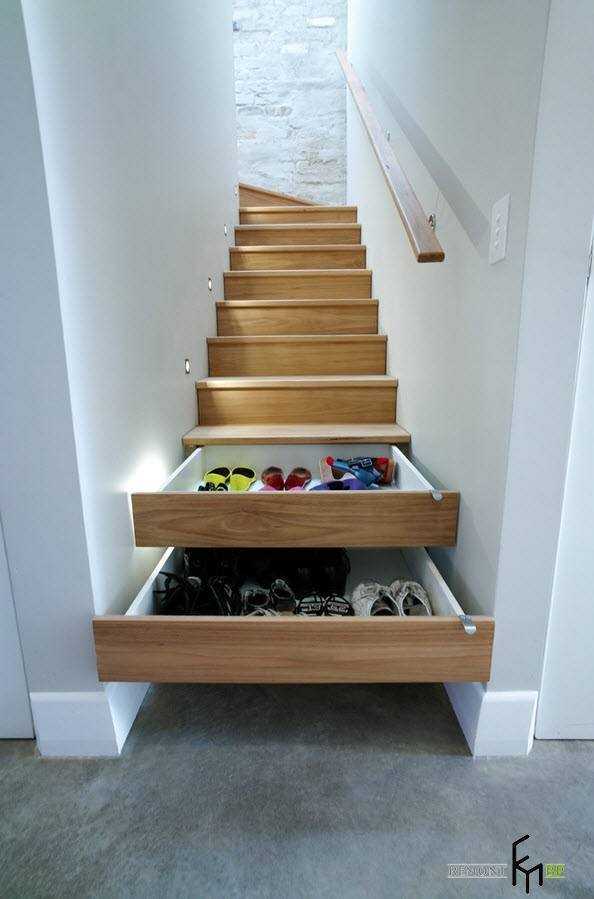 5. Если у вас двухэтажный дом, редко используемую обувь можно хранить в скрытых секциях под лестницей.
