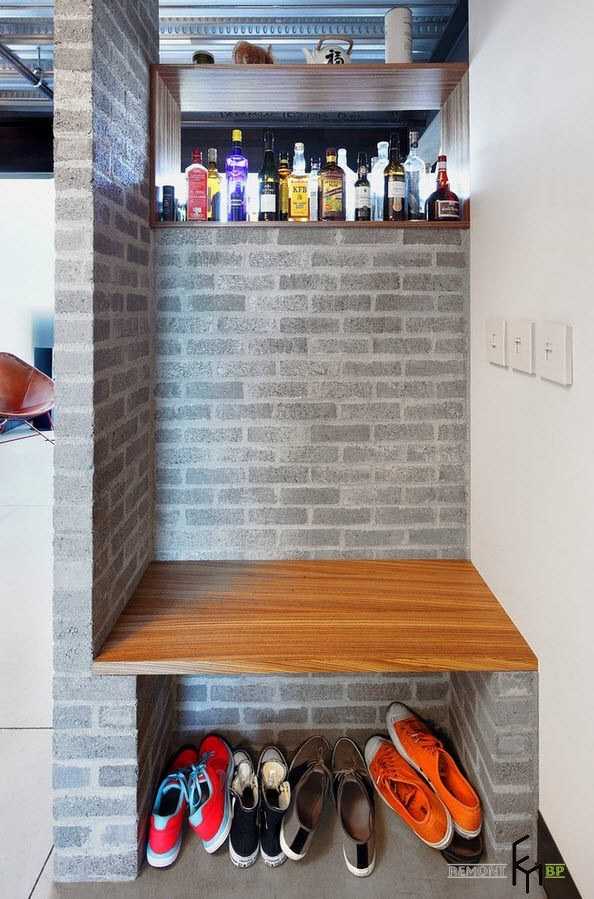 Если под лестницей организовать полки не получается, возможно есть место сделать это рядом. Небольшие ниши способны вместить обувь, которая будет вам нужна для ежедневной носки.