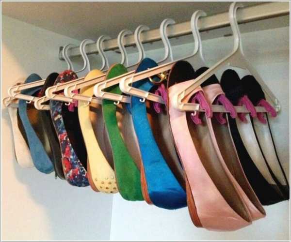 3. Вешалки для обуви позволяют сэкономить драгоценное пространство в маленьких квартирах. На них можно хранить легкие летние изделия, например сланцы, тапочки и сандалии. Или подвешивать высоки сапоги за голенища.