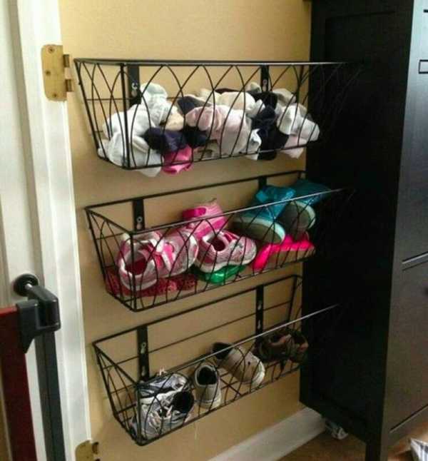 А детскую обувь можно и в подвесных металлических корзинах хранить: