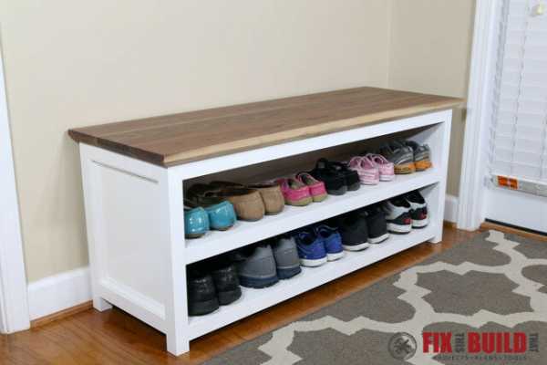 Самое удобное расположение полок для обуви – под сидением, на которое вы присаживаетесь, чтобы обуться, завязать шнурки.