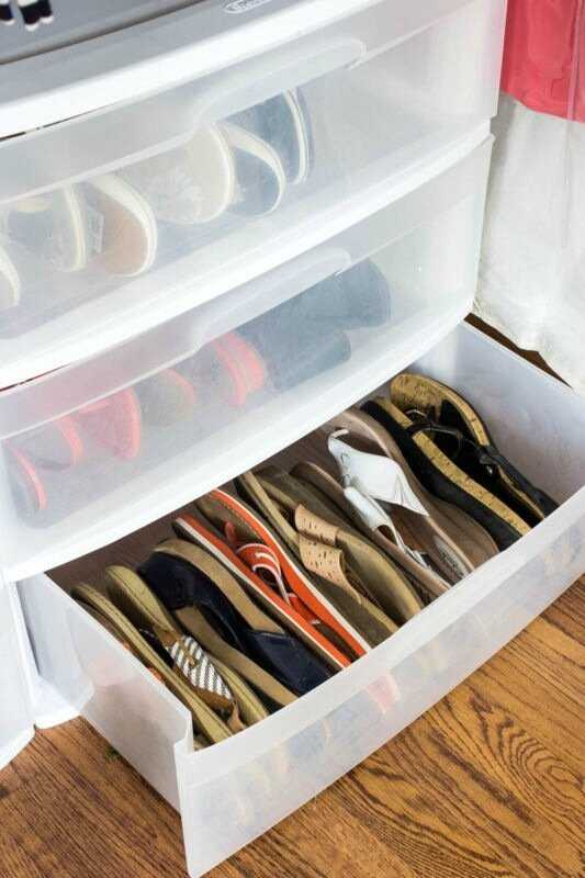 Для обуви, которая носится редко, также есть несколько удобных и оригинальных способов хранения: