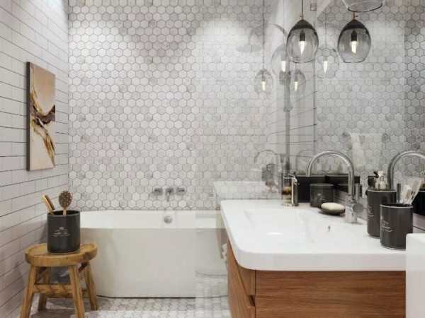 - керамическая плитка в виде шестигранников – необычно и эффектно. Никого не удивите использованием керамики в интерьере ванной комнаты. Но если хотите произвести впечатление, привнести изюминку – необычная форма станет идеальным решением. Шестигранники присущи скандинавскому стилю, и сложно представить современный интерьер без такой отделки.