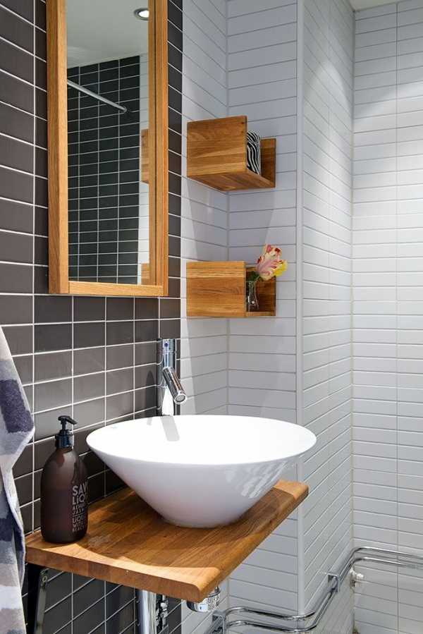 При неукоснительном следовании скандинавским мотивам, светлая древесина является важной составляющей и желательным компонентом в ванной комнате.