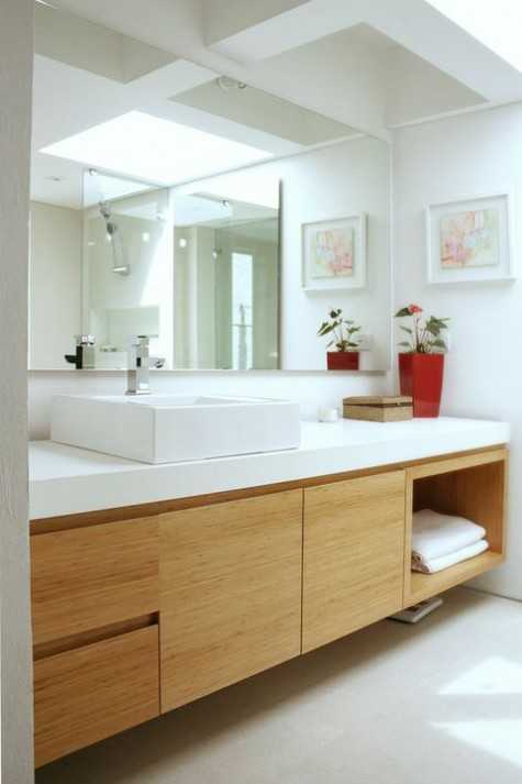 Раковина в свою очередь может быть накладной или встроенной, выбирать только вам. Для накладной раковины понадобится столешница, это может быть отдельная конструкция, а может быть специальная тумба с уже готовыми ящиками. Лучше всего будет смотреться столешница сделанная из дерева, либо из других материалов выполненных «под дерево».
