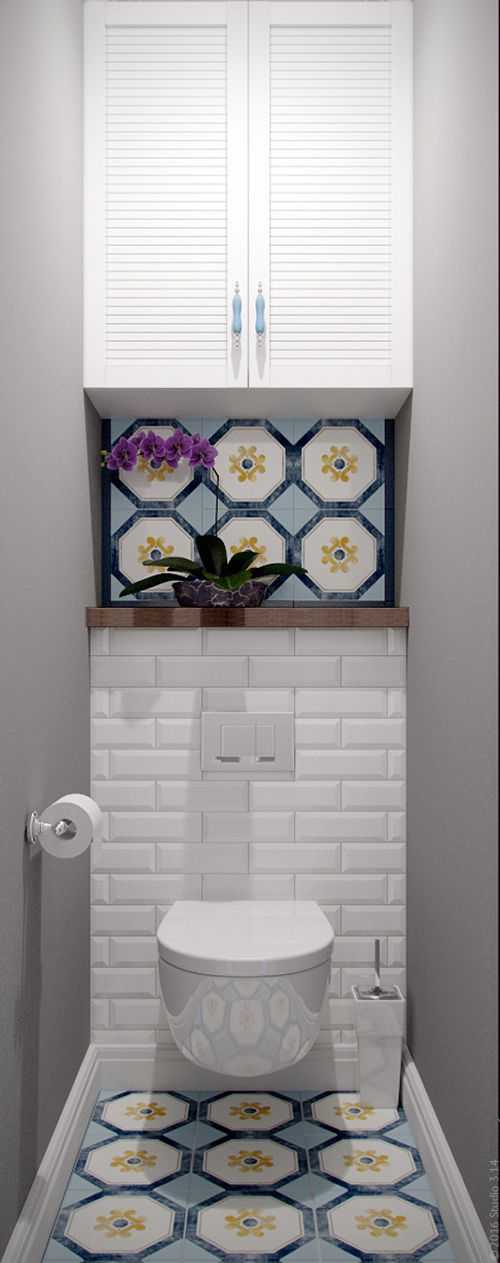В условиях малого метража целесообразным станет использование встроенной мебели и подвесной сантехники, которая не будет занимать дополнительное пространство в итак скромном санузле.