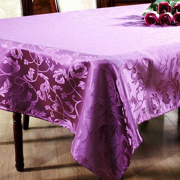Для праздничных мероприятий также подойдет хлопок и жаккард. Первый считается классикой, легко гладится, но подвержен усадке при стирке. Второй – требует особого ухода, но создаст впечатление роскоши.Вместо традиционных вариантов много людей предпочитают пользоваться клеенками. Сделаны они с поливинилхлорида на тканной или нетканной основе. Стирать их не нужно, достаточно протереть влажной салфеткой, служат достаточно долго. Однако накрывать ими праздничный стол несолидно, а при соприкосновении с горячим может выделяться неприятный запах.