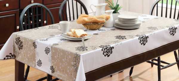 В магазинах предложены различные разновидности материалов для скатертей, поэтому у покупателей есть свобода выбора. Если вы хотите принимать гостей с красивой скатертью, но в то же время уберечь ее от износа, воспользуйтесь следующей хитростью — стелите на столе клеенчатое изделие и выполняйте на нем все привычные действия. На время трапезы и принятия гостей застилайте стол нарядной скатеркой, лучше всего подойдет скатерть-книжка.