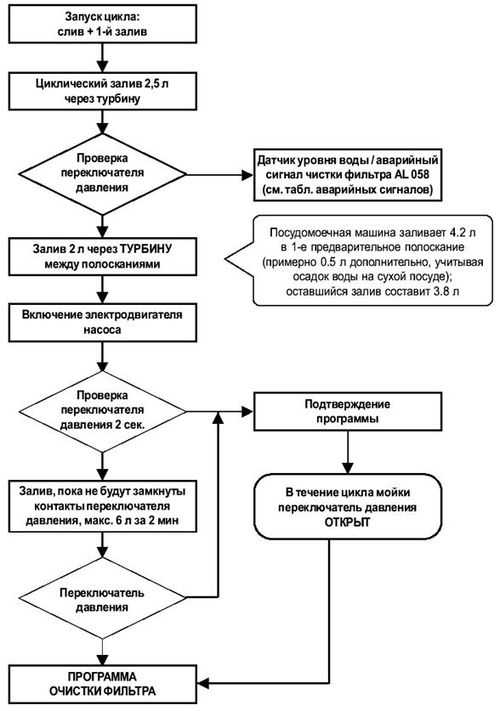 Циклы мойки посудомоечной машины зависят от модели аппарата, минимальным значением количества обычно является 4. Полный цикл включает в себя: