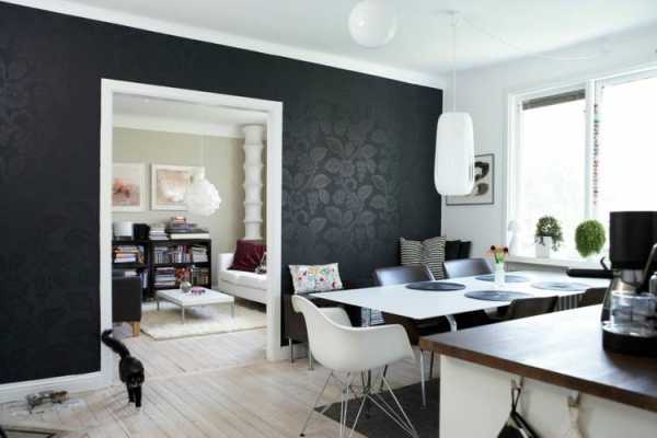 Черный– очень холодный, его никак нельзя назвать уютным. Преобладание черного в интерьере может даже вызывать неприятное чувство тревоги, поэтому добавлять его нужно очень осторожно и малыми дозами. Однако, нельзя не отметить, что это цвет изысканности, строгости и благородства. Имеет свойство оттенять яркие цвета. Поэтому совсем немного черного скрасит Ваш интерьер. Стена, отделанная черным цветом, будет невероятно красивым фоном для дорогой картины или яркого элемента мебели. Черный сделает запоминающейся гостиную комнату холостяка, если выбрать его в качестве отделки стен, а вдоль них расставить мебель ярких цветов. Причем варианты цвета мебели в этом случае ограничены только Вашей фантазией!