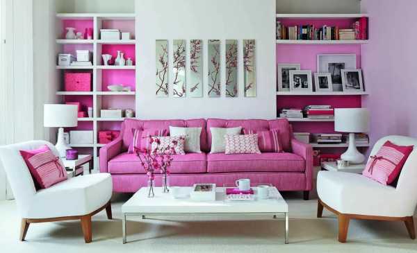 Розовая гамма привычна нам, когда используется для создания интерьера девичьих комнат. Наиболее выигрывает розовый, когда его комбинируют с белым – это очень нежное, но в то же время подвижное сочетание. Сочетать с фиолетовым можно, но тоже достаточно аккуратно. Непременным условием удачного сочетания будет третий – белый, серый или бежевый. Дополните все это несложными аксессуарами и Вы получите изысканное и легкое помещение.