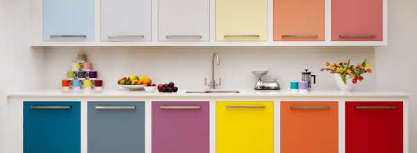 - В современных кухонных гарнитурах фасады могут быть разных цветов