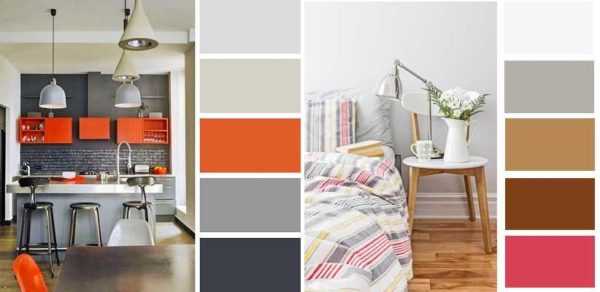 Кстати, с серым неплохо смотрятся и коричневые, а если к ним добавить в качестве акцента малиновый, желтый, оранжевый — теплые оттенки — получается очень уютный и «теплый» интерьер, который подходит для спальни, комнаты девочки, применимо и к оформлению кухни.