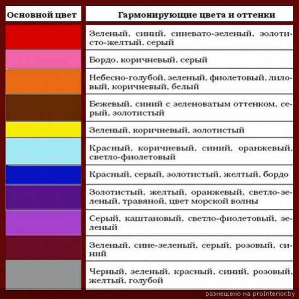 Таблица сочетания цветов в интерьере — несколько вариантов