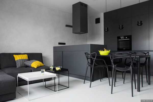 Серый в кухне тоже очень неплохо смотрится. Он подходит для создания интерьеров в стиле лофт, хай-тек, модерн. В этом помещении все может быть еще проще: к трем-четырем оттенкам серого добавить один яркий — желтый, красный, оранжевый, синий, зеленый. В одном из ярких и теплых оттенков. Получается очень необычное и совсем не унылое сочетание.