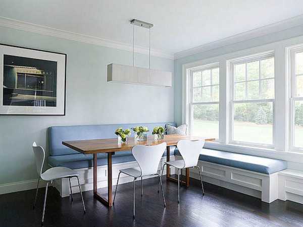 Голубой – достаточно прохладный, но воздушный цвет. Успокаивает, не надоедает, великолепно сочетается с большей половиной спектра. Голубой отлично подходит для кухни, если его не слишком много. Кухонные фасады в голубом исполнении будут приятно бликовать на солнце. Для контрастного цветового сочетания часто используется холодный голубой и теплые красные тона. Для восточных интерьеров характерно сочетание голубого или бирюзового с оранжевым цветом. Бирюза с черным – стилистика ар-деко и модерна. Бирюзовый цвет как разновидность голубого очень моден, широко используется в создании современных интерьеров. Что оправданно, потому как смотрится он невероятно красиво.