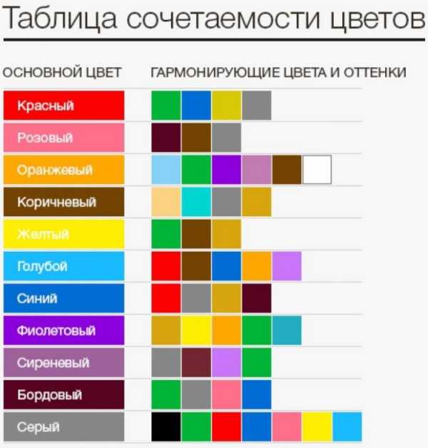 Таблицы гармоничных сочетаний цветов в интерьере могут быть представлены в таком виде