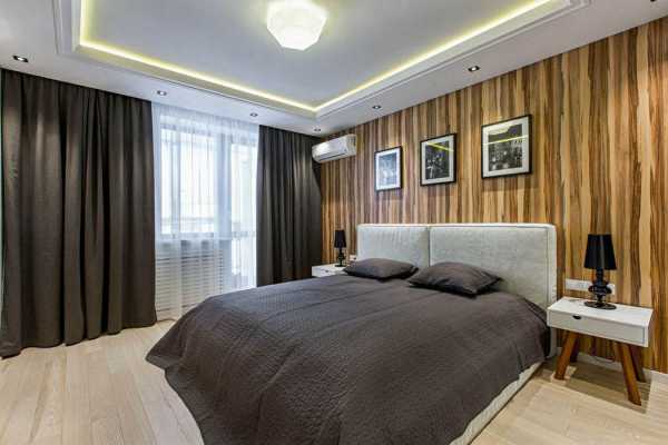 - В спальне бежевый с коричневым создает ощущение стабильности