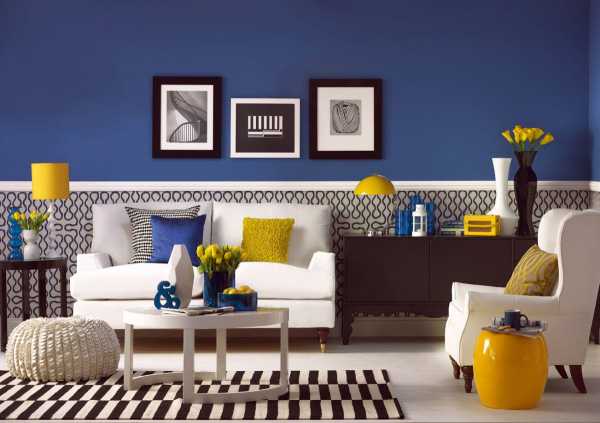 | Желтый | Современный, минимализм, прованс | Белый, серый, фиолетовый, коричневый, черный, красный, синий | Просторная гостиная, детская комната | Напоминает лето, солнце, поднимает настроение. Часто используется для акцента. |
