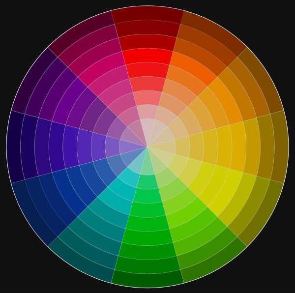 Но и это еще не все. Каждый из цветов в круге изменяется по насыщенности — от более светлого в середине, к темным снаружи. То есть, в выбранном секторе можно подобрать несколько оттенков по тону. Такое сочетание цветов в интерьере называется монохромным. Их тоже используют в дизайне.