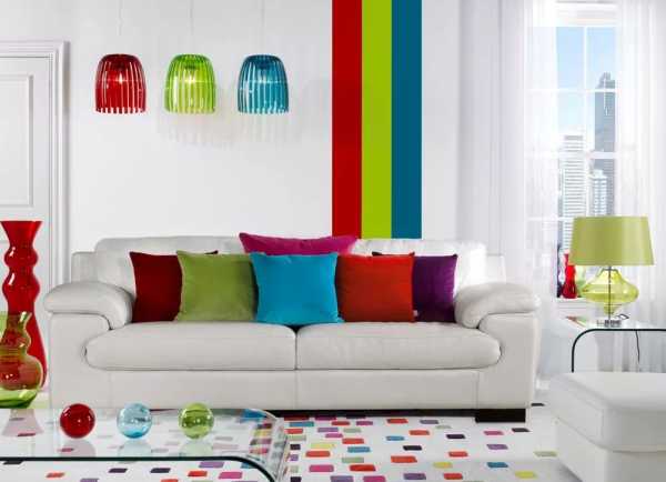 Но для интерьера два оттенка — это слишком монотонно и скучно. Гораздо интереснее комнаты оформленные с сочетанием трех, четырех или более цветов. При этом использовать цвета в равных пропорциях неправильно. Один-два из них выбираются как основные, их «много». В эти цвета окрашивают стены, пол, они присутствуют в обивке мебели, текстиле. Еще один-два используется как дополнительные. Их не так много, но они заметны. Остальные — сколько бы их не было — служат для внесения разнообразия и акцентов. Они присутствуют в небольших количествах — это детали декора, подушки и т.п. Если вы присмотритесь к интерьерам, которые вам нравятся, скорее всего, обнаружите такую закономерность распределения цветов.