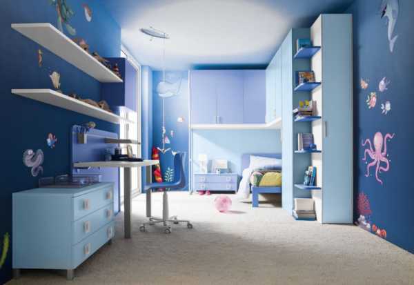 Интерьер спальни — синий цвет