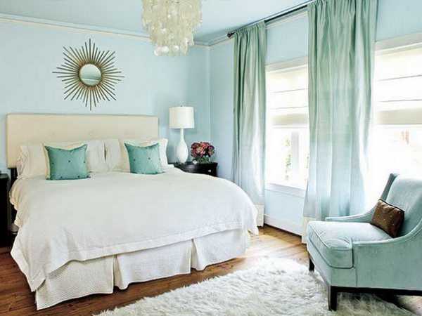 Сочетание голубого цвета в интерьере спальни