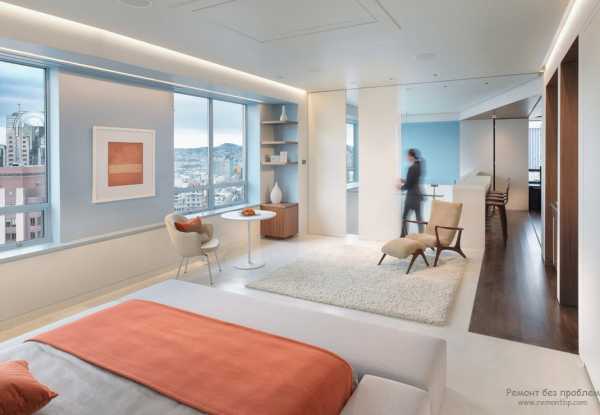 Тандем голубого цвета с белым создает в интерьере просто воздушную атмосферу, позволяющую хорошо и полноценно отдыхать, поэтому такой вариант отделки настоятельно рекомендуется для таких специфических комнат как спальня и гостиная.